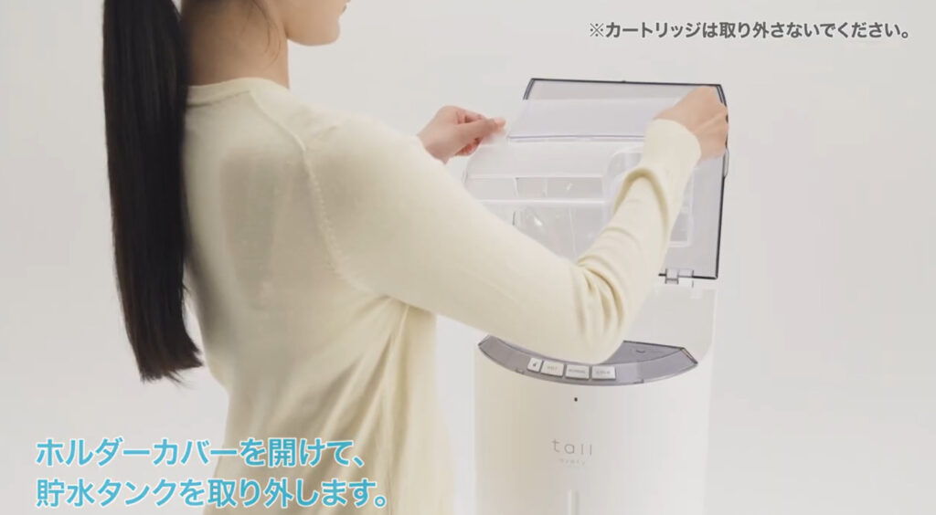 取り外した貯水タンクに残っているお水を捨てて、タンク内部の水気をきれいに拭き取ってください 。