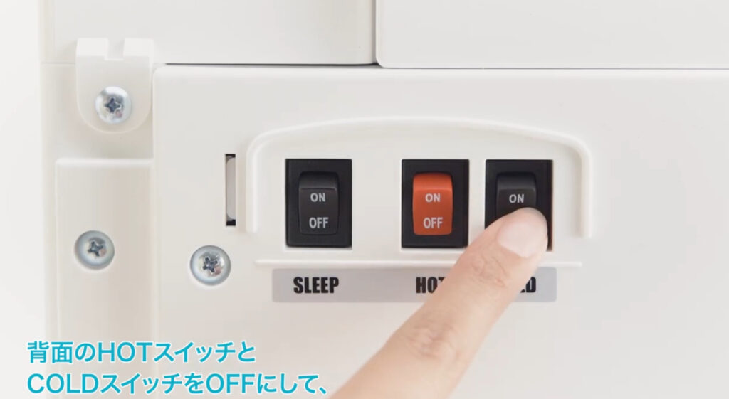 - 背面の「HOTスイッチ」と「COLDスイッチ」を“ON”にします 。