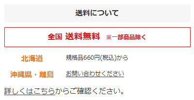 基本的には送料無料(商品代込み)ですが、以下の地域は物理的に配送コストが跳ね上がるため、別途送料がかかる場合があります。