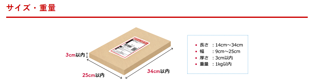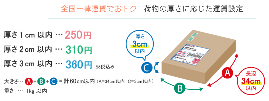 クリックポスト34cm × 25cm(A4)3cm以内1kg以内