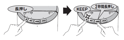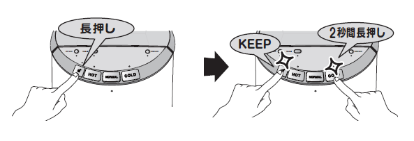 2. UNLOCKランプが点灯したら、ボタンを押したままの状態で「COLD」ボタンを2秒間長押しします。