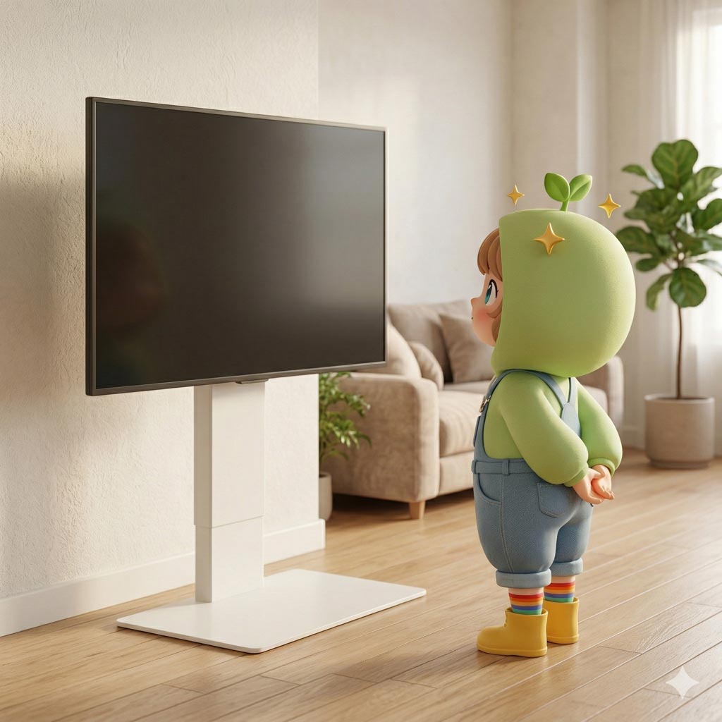 この記事では、見やすい高さの具体的な目安と、WALLテレビスタンドを使った高さ調整のやり方をわかりやすく解説します。