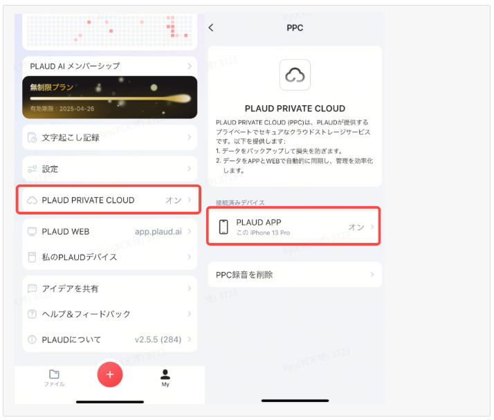 (この設定が連携の鍵!) PLAUD WEBは、スマホアプリから「PLAUD PRIVATE CLOUD」というクラウドサービスにアップロードされたデータを表示する仕組みです。そのため、このクラウド同期機能をアプリで有効にしない限り、Web版にデータは表示されません。