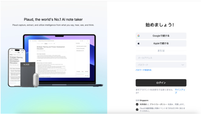 - PCのブラウザで公式サイトを開く パソコンのWebブラウザで、PLAUD WEBのログインページ