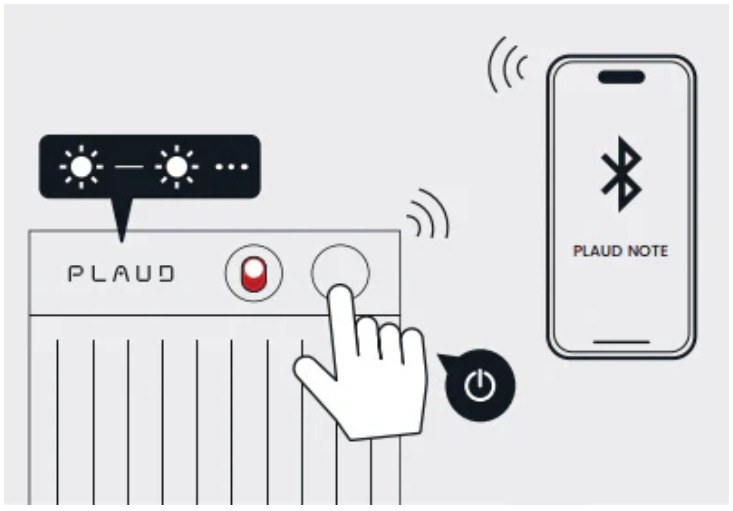 - 2. PLAUD NOTE本体の電源は入っていますか? PLAUD NOTEは、録音ボタンを短く押すことで起動します。ボタンを押した際に、本体のインジケーターライトが白色に点滅すれば、アプリと接続する準備が整った合図です。